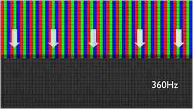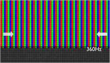 传统液晶驱动是从左到右单向进行,,,在画面更新速度愈来越愈快的情况下,,位于驱动线路末端的右下角区域,,画素的闸极来不及在短时间内获得足够电压,,,,无法显示出正确的颜色资讯。。。。 |